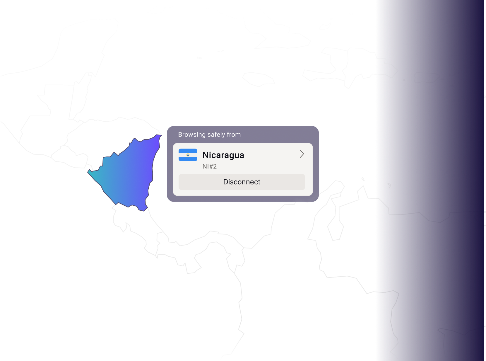 Connect to a Nicaraguan server to surf the internet with ease, privacy, and security.