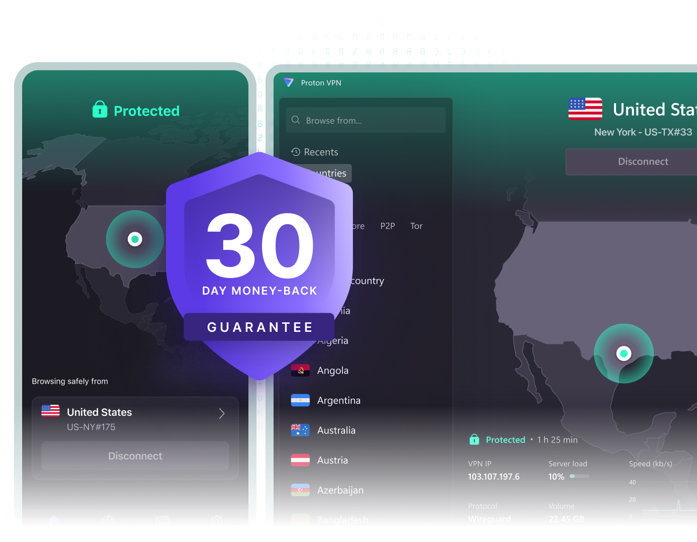 We’re the only free VPN with a strict no-logs policy, no ads, and no data limits. If you want access to faster servers to stream or P2P file share and get extra security features, upgrade to a paid plan with our 30-day money-back guarantee.