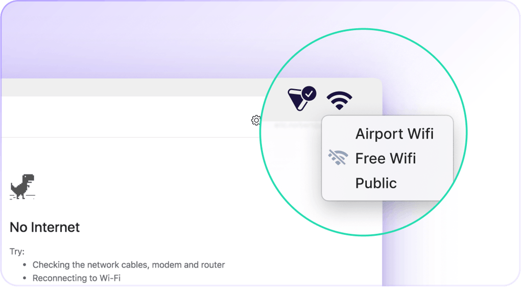 我們的緊急終止開關不會影響您的連線速度或瀏覽,並提供了一道寶貴的最後防線。 如果您的網際網路供應商短暫中斷,或您切換 WiFi 網路,它能確保您的瀏覽保持私密。