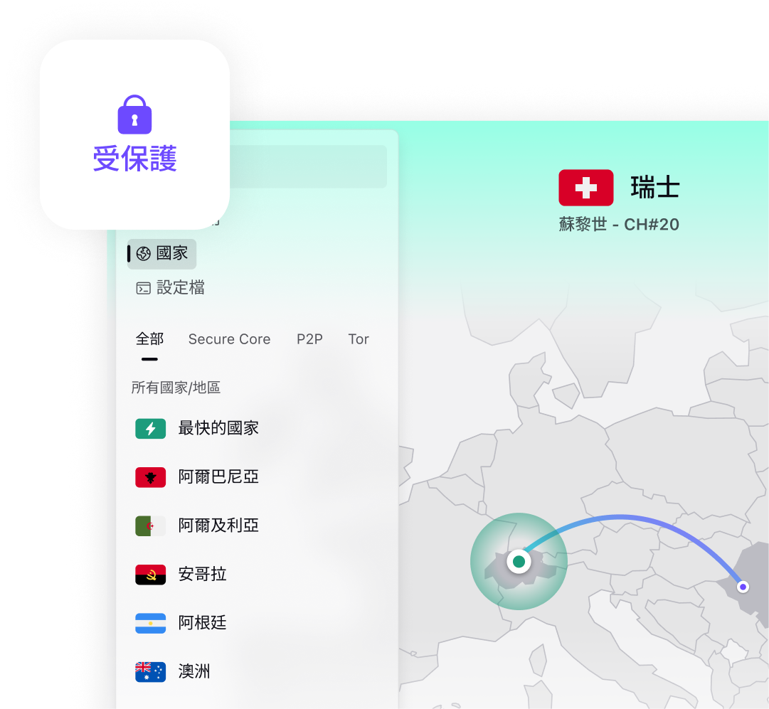 Proton VPN 免費方案提供您維持線上隱私和安全所需的所有基本功能。 升級到 Proton VPN Plus 版以獲得更快的速度、全球串流,以及進階安全功能。