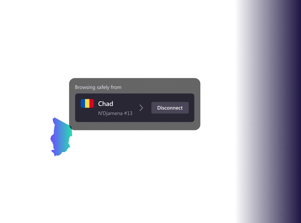 我們在查德設有伺服器,可讓您繞過地區封鎖、串流無限的娛樂內容,並保護您的隱私。