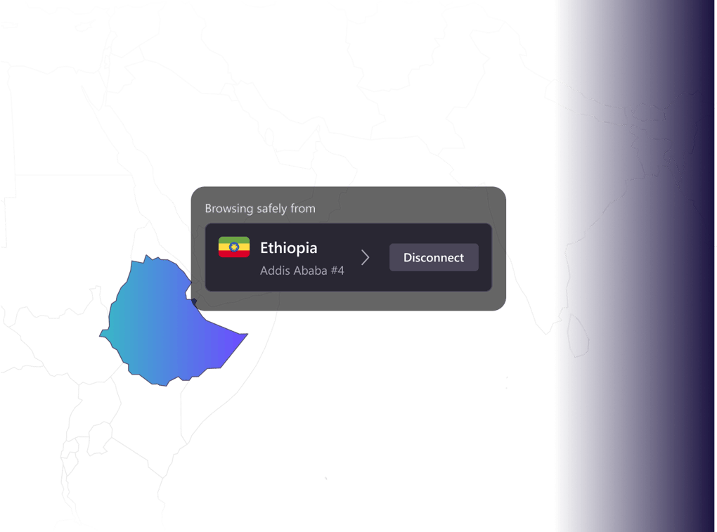 連線到衣索比亞伺服器,即可輕鬆、安全且具隱私地瀏覽網際網路。
