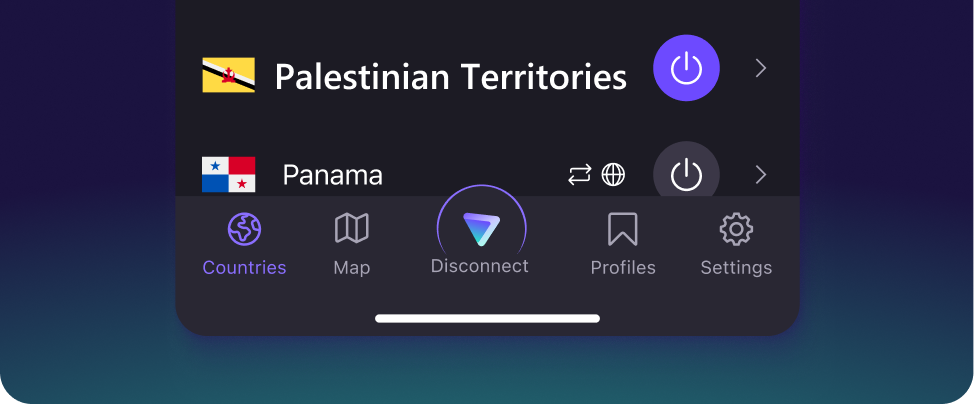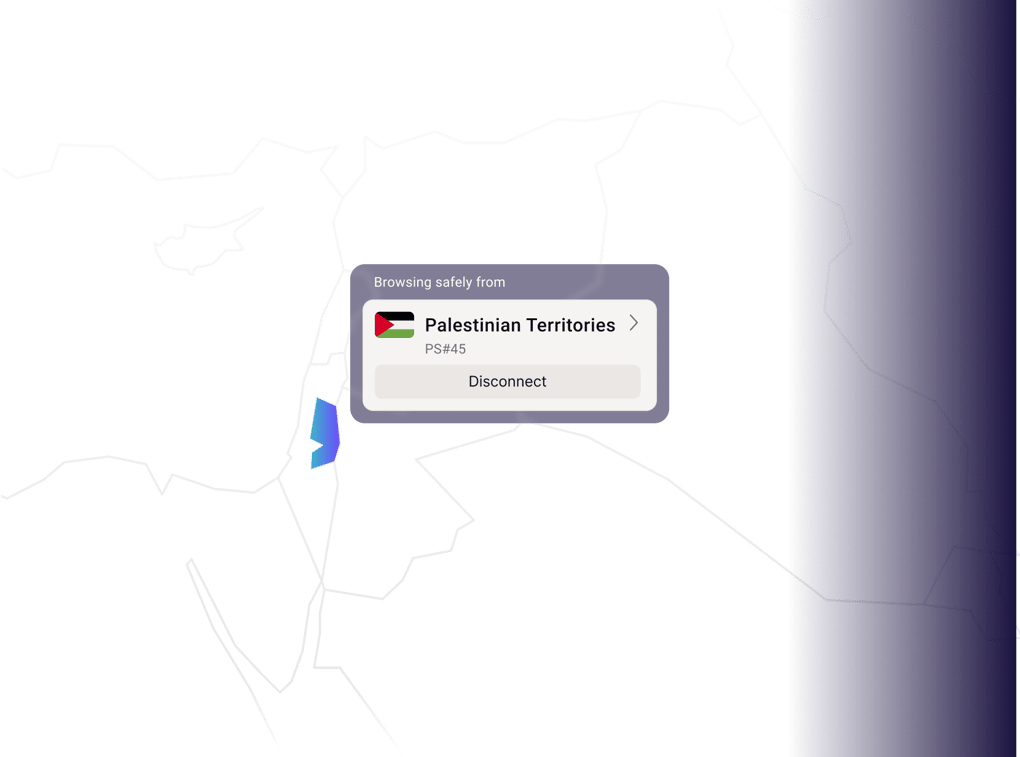 Connect to a server in the Palestinian Territories to surf the internet with ease, privacy, and security.