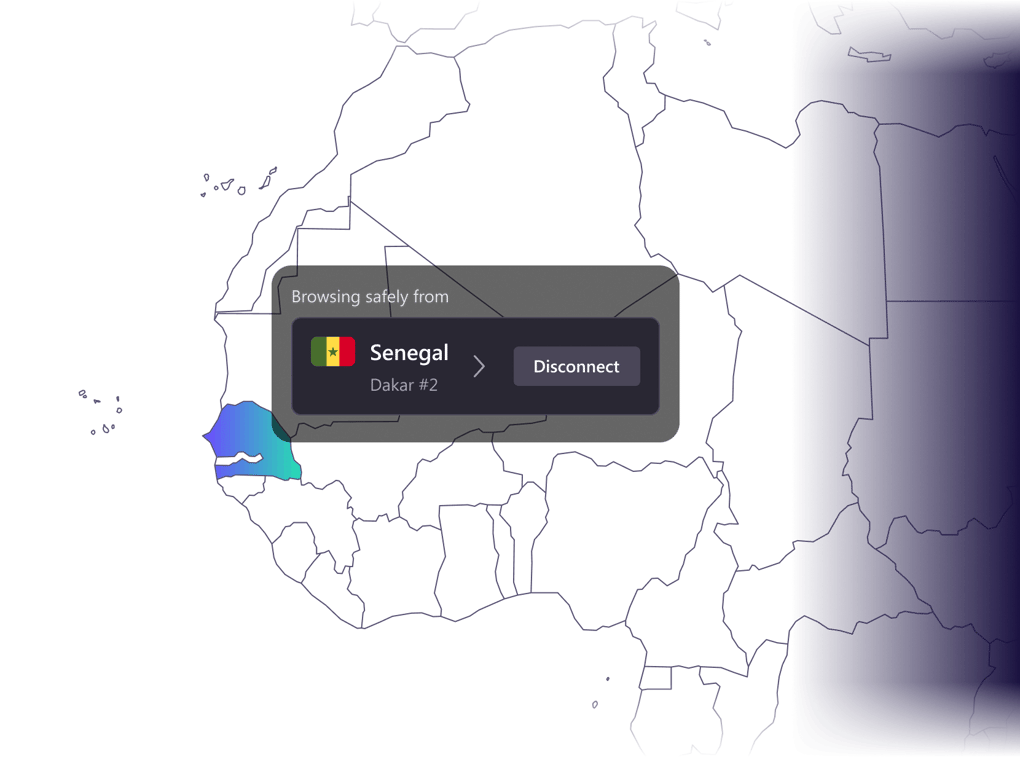 連線至塞內加爾伺服器,輕鬆、私密且安全地遨遊網際網路。
