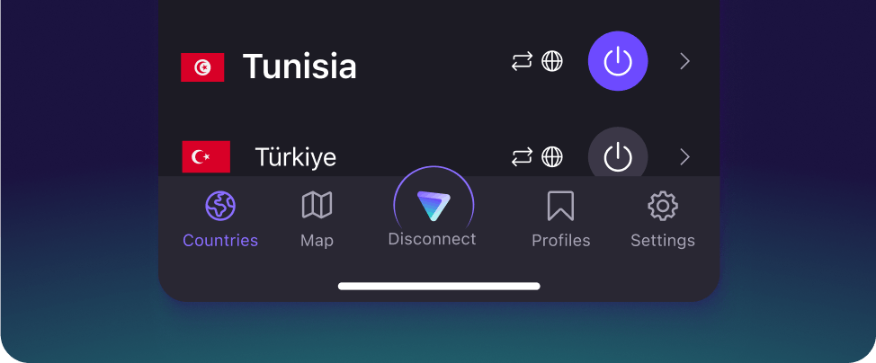我們在突尼西亞設有伺服器,讓您能繞過區域封鎖、無限串流娛樂內容並保護您的隱私。